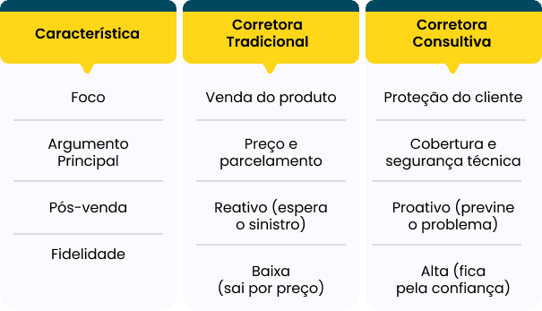 Ao contrário do atendimento tradicional, que muitas vezes se resume à oferta de produtos, o modelo consultivo envolve uma análise detalhada da realidade do cliente. O corretor deixa de ser um “vendedor de apólices” para se tornar um conselheiro técnico.
